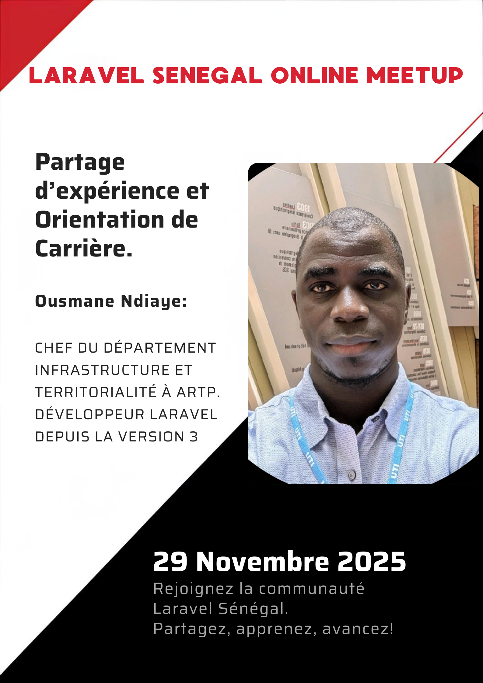 Rejoignez-nous pour un meetup exceptionnel où nous aurons l’honneur d’accueillir Ousmane Ndiaye, une figure reconnue dans l’écosystème technologique sénégalais. Avec plus d’une décennie d’expérience, Ousmane a vu Laravel évoluer depuis sa version 3 et partagera avec nous un retour d’expérience unique, riche en conseils et en perspectives.